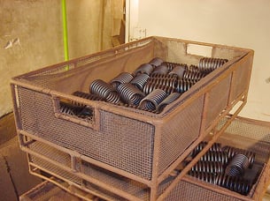 - 線径をマイクロメーターで確認する、材料のよじれ、曲がり、傷の有無を目視で点検する。傷の深さはJIS規格の範囲内、割れは全て不合格とします。
